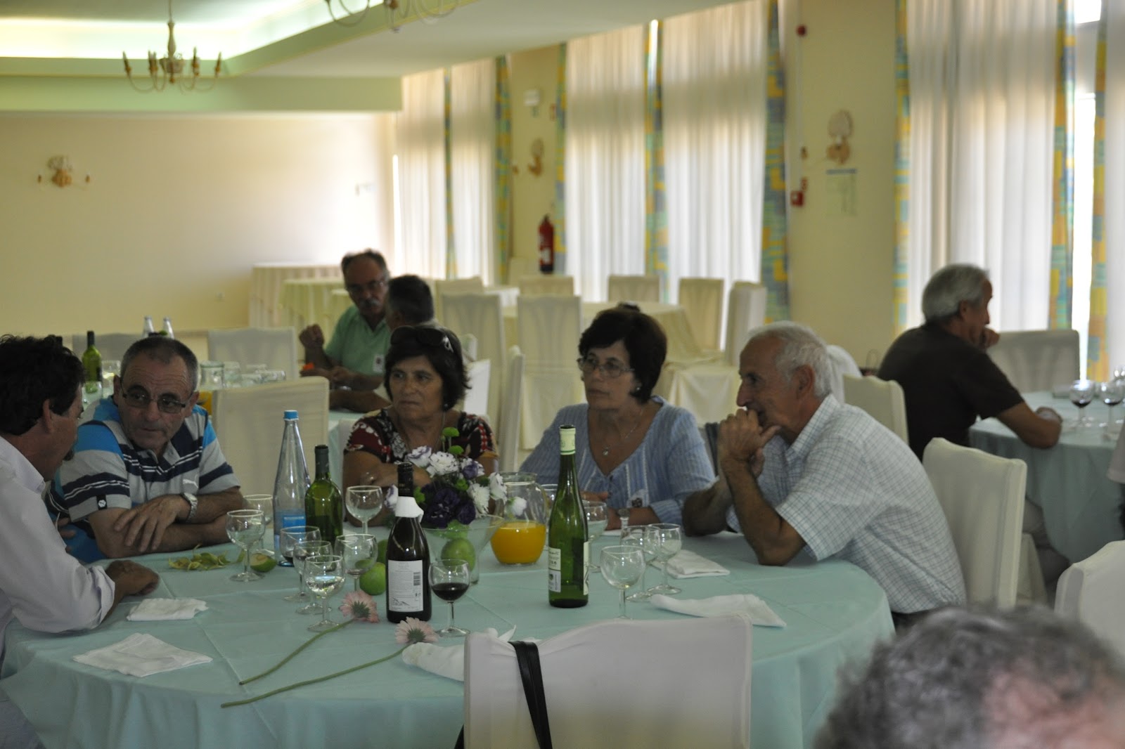 Pão vinho e rosas sobre as mesas;