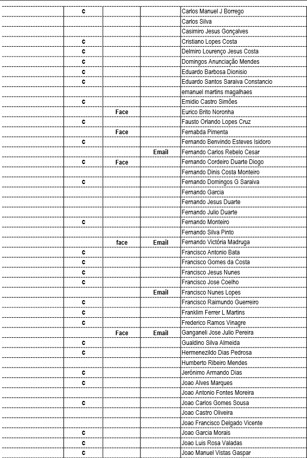 Lista dos ex. Camaradas que tivemos conhecimento do seu falecimento