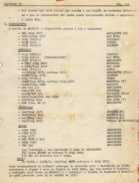A partir de 08JUL71 o CMD do Batalhão passou a estar sediado em Ambrizete