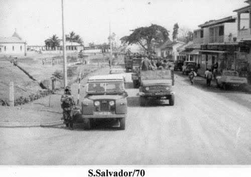 São Salvador, em 1970. Estava ali sediado o Comando do Sector, e funcionava como o pivot dos Batalhões de Noqui, Cuimba a Maquela do Zombo. Era em São Salvador que o MVL- Movimento de Viaturas Logísticas - se separava, seguindo uma parte até Maquela do Zombo, enquanto a parte restante vinha até ao MPozo. O Fur. Milº Coutinho, noutros posts no Panorâmio, já nos descreveu a sua experiência de MVL. Eu só digo: quando chegavam a São Salvador, uma vez estava por lá e vi, metiam respeito. Camuflados repletos de pó, barbas cerradas, as costas moídas nos taipais dos Unimogs... Talvez alguém queira acrescentar mais algumas palavras ao tema MVL.